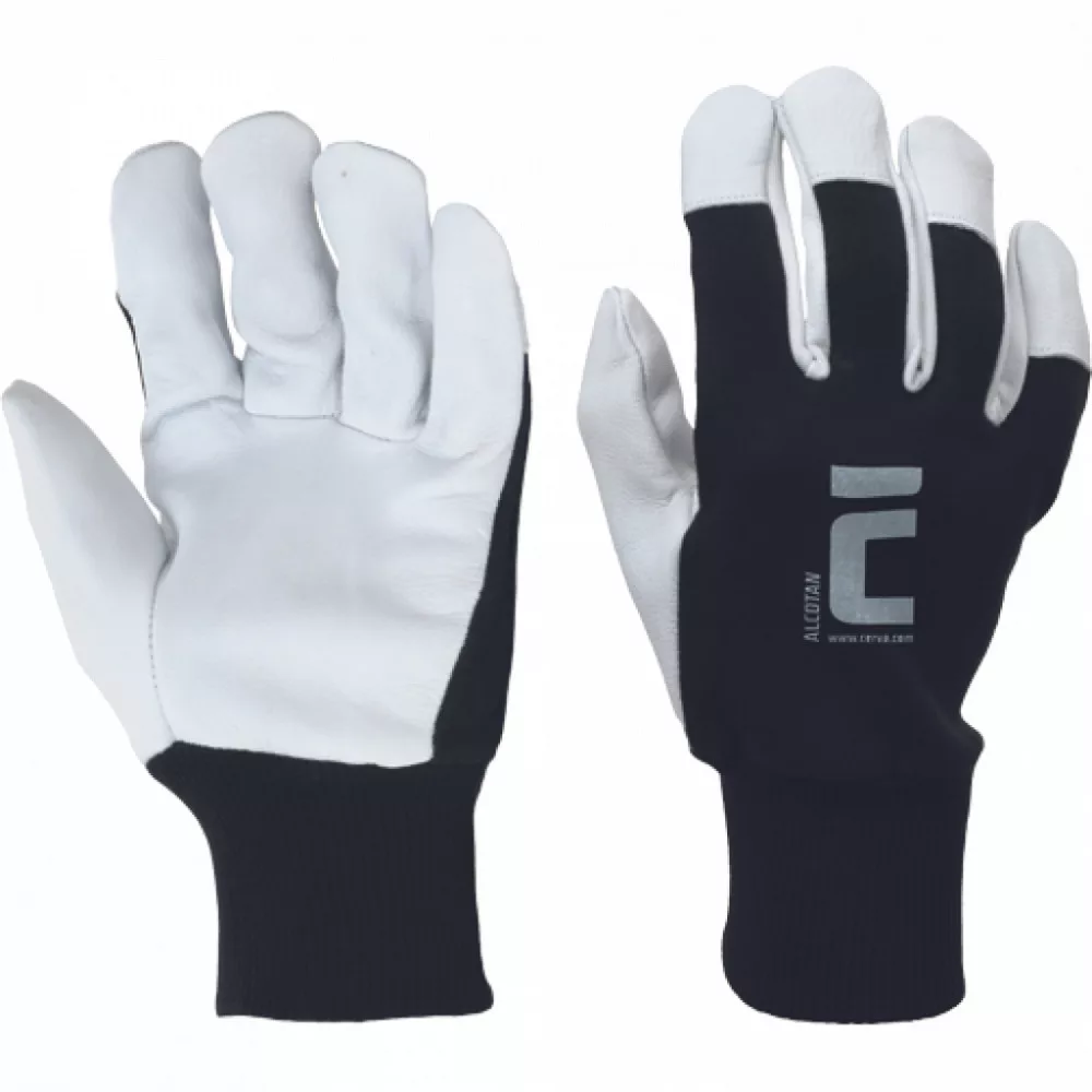 Kesztyű kecskebőr tenyérrel, pamutszövet kézfejjel és kötött mandzsettával. EN 420; EN 388 (2122X)