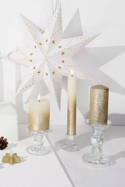 Élénkítse meg karácsonyi dekorációját a minimalista MagicHome gyertyatartóval. Ez az elegáns gyertyatartó 5,5x5,5 cm-es, kiváló minőségű üvegből készült, amelyet finom gyöngyházszínű bevonattal láttak el. Egyszerű és letisztult dizájnja kifinomult és modern hatást kölcsönöz a belső térnek. A gyöngyház bevonatú üvegszerkezet gyönyörű fényvisszaverődést eredményez, és elegáns megjelenést kölcsönöz gyertyáinak. Ez a minimalista gyertyatartó tökéletesen alkalmas arra, hogy lágy és elegáns hangulatot teremtsen otthonában az ünnepek alatt.