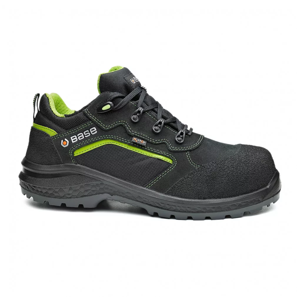 Base S3 munkavédelmi cipő magasabb vízálló tulajdonsággal színbőr és technikai textil felsőrésszel és H2st0p membránnal. Kompozit orrvédelemmel és kompozit talpátszúrás elleni védelemmel ellátott, ütéscsillapítás a saroknál. A minél nagyobb tartósság érdekében orrborítással rendelkezik. Antisztatikus és szénhidrogéneknek ellenálló egyedi kialakítású talp,a férfi és női lábnak megfelelő külön kapli szélességgel is választható. Javasolt felhasználási területek: nehézipar, fémipar, könnyűipar, mezőgazdaság, építőipar. Felhasznált anyagok és technológiák: Felsőrész: Vízálló bőr és technikai textil H2st0p membránnal. Bélés: SmellStop szagsemlegesítő és antibakteriális technológiával. Kapli: SlimCap technológiával. Talp: Fáradtsággátló AirTech+TPU-Skin és Life Plus technológiával.