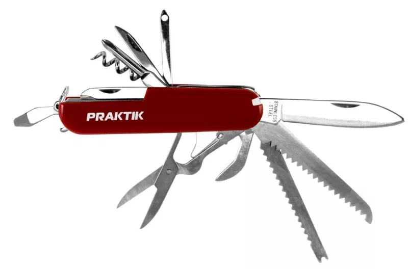 Funkciók száma: 15, sokoldalú használatra különféle eszközökkel, például pengével, csavarhúzóval, konzervnyitóval.