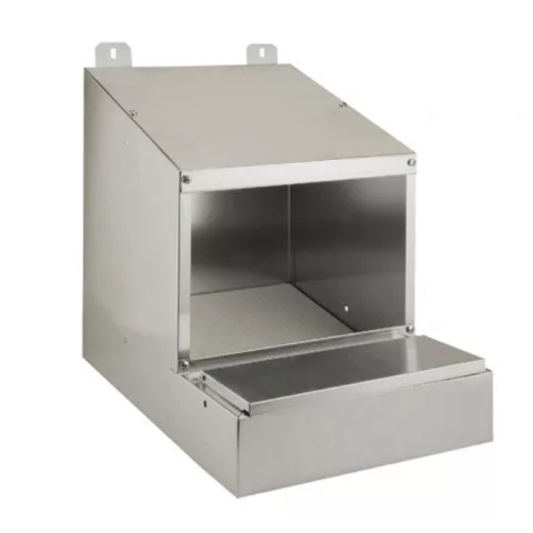 Alkalmas tyúkok számára keltetéskor és tojásrakásra. Két pozícióban állítható műanyag alsó rész. Függesztési lehetőség. Mérete: 30,5x44,7x43,5 cm