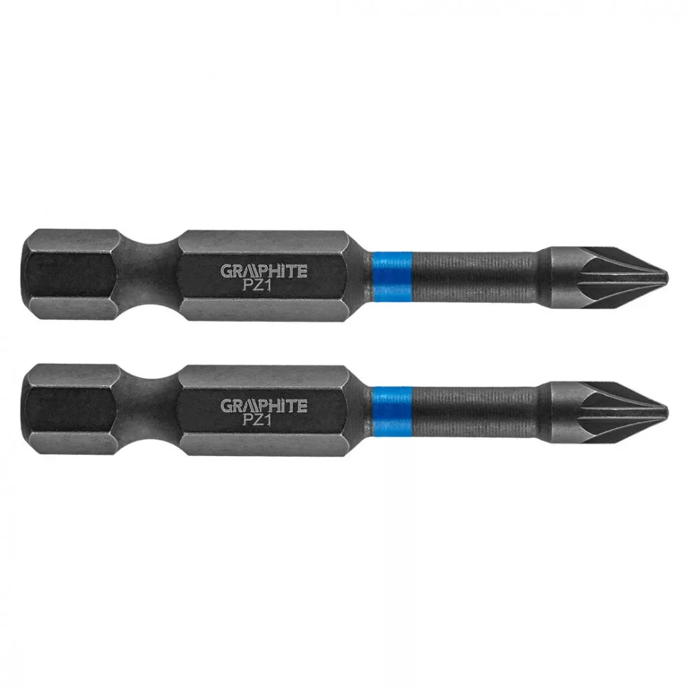 GRAPHITE torziós bit ütvecsavarozáshoz (ref. 56H521) PZ1x50 mm. Nagy teljesítményu bitek, amelyeket nagy nyomatékú csavarbehajtóval vagy ütvecsavarozóval, történő munkavégzéshez terveztek. Kiváló minőségű S2 acélból készül, amelyet fokozott rugalmasság és a mechanikai sérülésekkel szembeni ellenállás jellemzi. A nagy nyomaték hatására forgó torziós zóna csökkenti az erőátadást, ami ellenállóbbá teszi a töréssel szemben, és élettartama lényegesen hosszabb lesz. A hegy csúcspontja tökéletes illeszkedést garantál.
