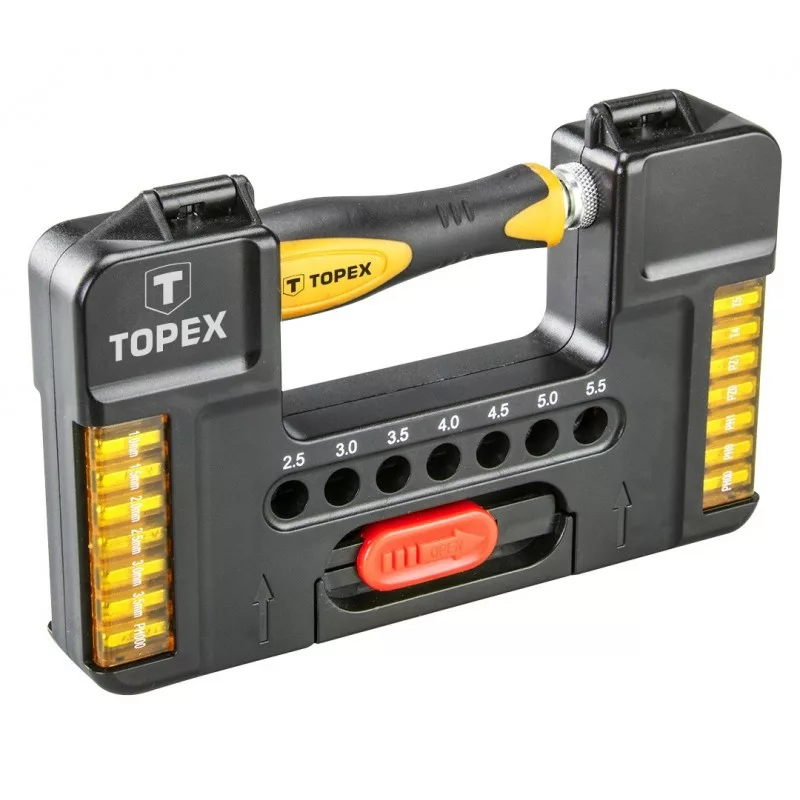 TOPEX Precíz csavarbehajtó bitek a szerszám hosszú élettartamát biztosító, nagyszilárdságú króm-vanádium ötvözetből készül. A hosszabbítónak köszönhetően a nehezen megközelíthető helyeken is lehetővé válik a munkavégzés. Praktikus műanyag csomagolása, minden egyes bit számára kialakított rekeszei megkönnyítik rendezett tárolást. A TOPEX márka ezermestereknek készült.