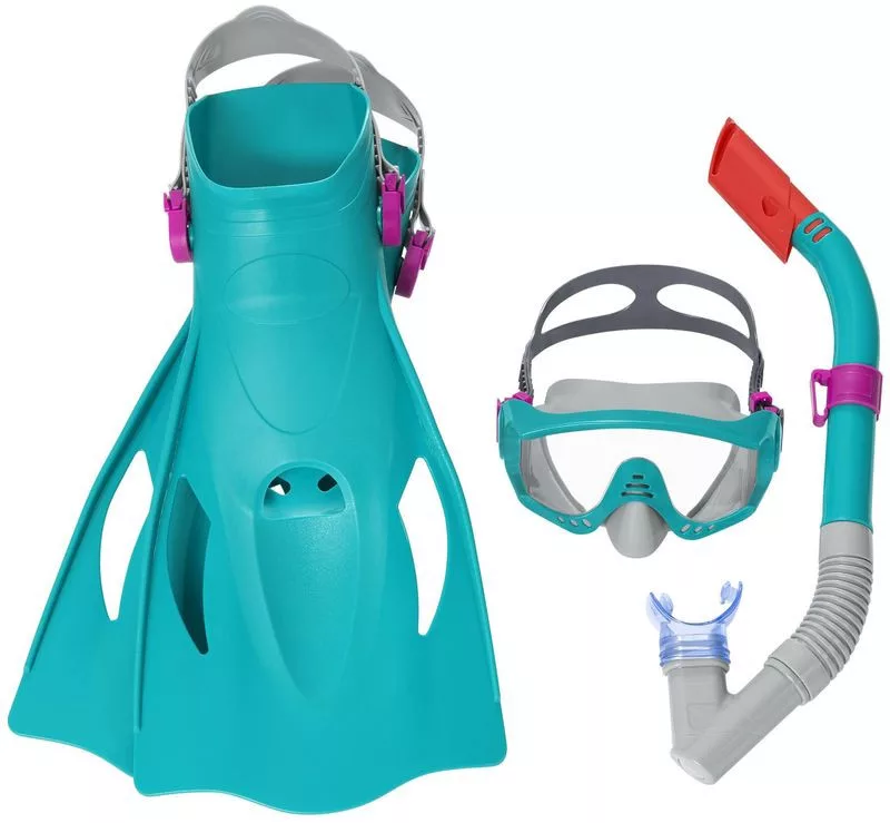 A Bestway Sparkle Water búvárszett ideális azok számára, akik élvezettel szeretnék felfedezni a víz alatti világot. A teljes szett tartalmaz búvárszemüveget, búvárcsövet és uszonyokat, így mindent biztosít, ami a kényelmes és biztonságos úszáshoz és búvárkodáshoz szükséges.