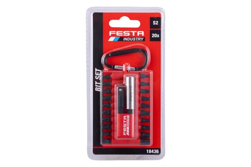 Torziós bitkészlet PH, PZ, torx S2 1/4" 25mm + hosszabbító FESTA INDUSTRY