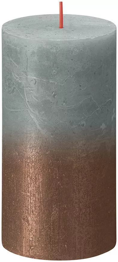 Bolsius gyertya rusztikus, hengeres, karácsonyi naplemente eukaliptusz zöld + réz, 130/68 mm