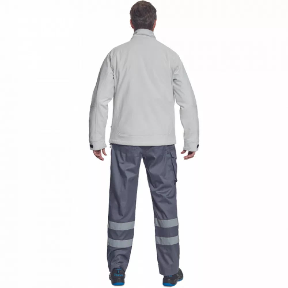 férfi softshell kabát membránnal, belül polár réteggel; cipzáras rögzítés; 1 mellzseb, 2 oldalsó cipzáras zseb