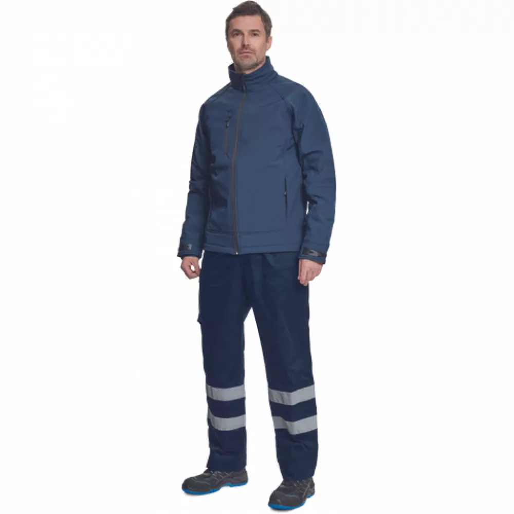 férfi softshell kabát membránnal, belül polár réteggel; cipzáras rögzítés; 1 mellzseb, 2 oldalsó cipzáras zseb