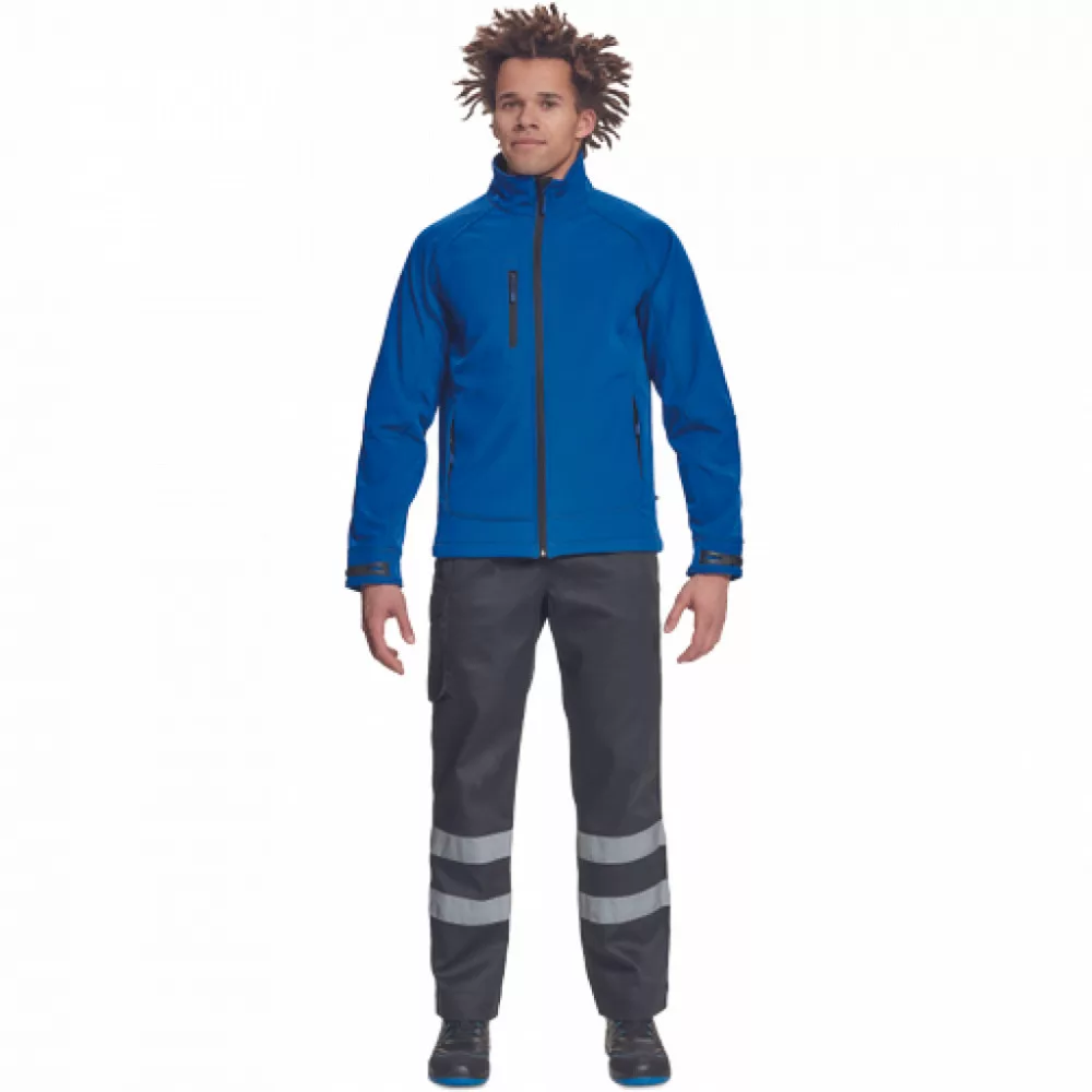 férfi softshell kabát membránnal, belül polár réteggel; cipzáras rögzítés; 1 mellzseb, 2 oldalsó cipzáras zseb