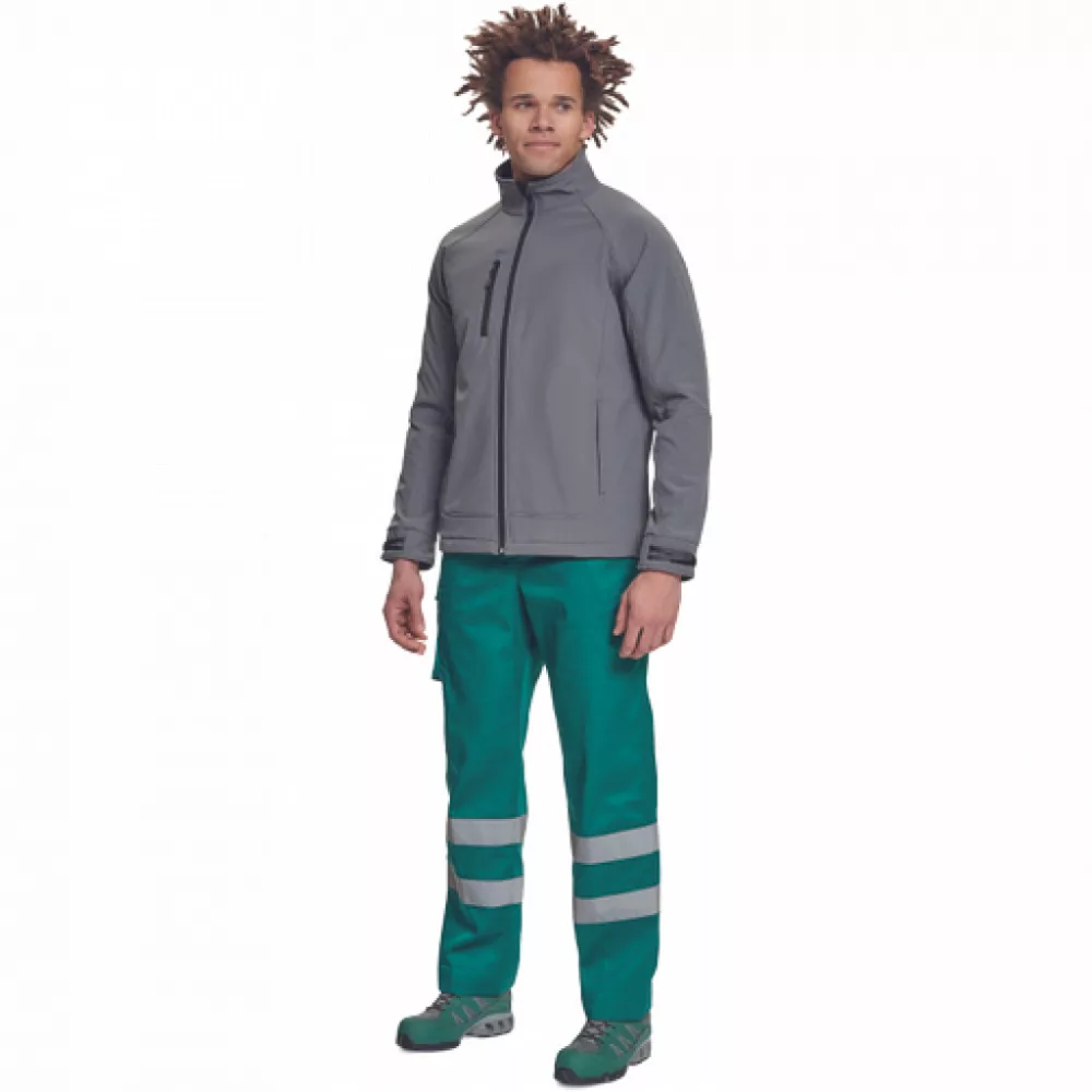 férfi softshell kabát membránnal, belül polár réteggel; cipzáras rögzítés; 1 mellzseb, 2 oldalsó cipzáras zseb