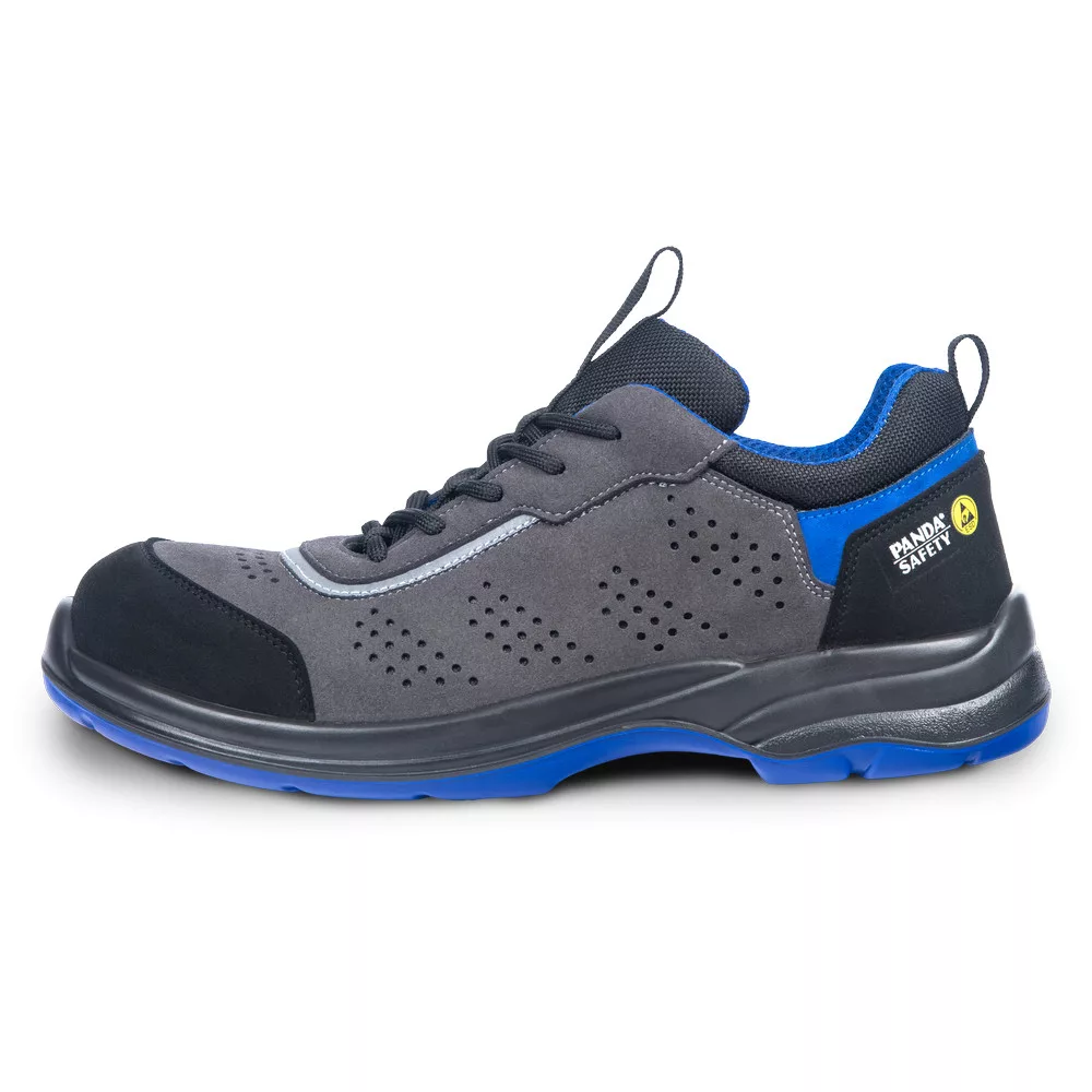 Könnyű, tartós és légáteresztő biztonsági cipő, Olaszországban gyártva. A Panda Safety – amely a megbízható és rendkívül kényelmes, ergonomikus lábbelik szinonimája – kiváló választást kínál beltéri munkakörnyezetekhez. A dupla sűrűségű PU talp kivételes kényelmet, könnyedséget és rugalmasságot biztosít. A mikroszálas felsőrész sok perforálással rendelkezik a hatékony szellőzés érdekében, és fényvisszaverő elemeket is tartalmaz. A fémmentes orrmerevítővel és átszúrás elleni talpbetéttel. A cipő Airnet hálós bélést kapott, míg a az Infinity talpbetét a sarokrészen fokozza a kopásállóságot. ESD védelemmel ellátva.