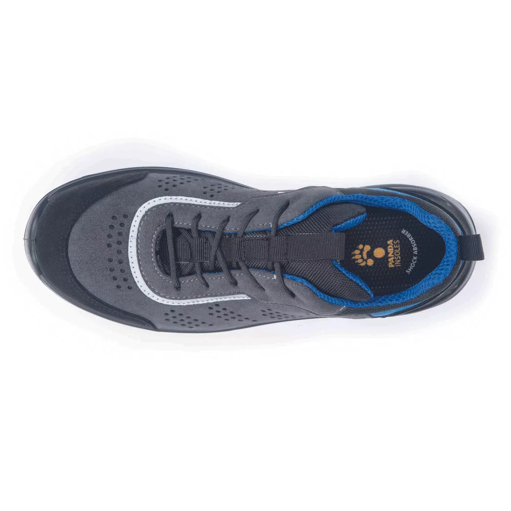 Könnyű, tartós és légáteresztő biztonsági cipő, Olaszországban gyártva. A Panda Safety – amely a megbízható és rendkívül kényelmes, ergonomikus lábbelik szinonimája – kiváló választást kínál beltéri munkakörnyezetekhez. A dupla sűrűségű PU talp kivételes kényelmet, könnyedséget és rugalmasságot biztosít. A mikroszálas felsőrész sok perforálással rendelkezik a hatékony szellőzés érdekében, és fényvisszaverő elemeket is tartalmaz. A fémmentes orrmerevítővel és átszúrás elleni talpbetéttel. A cipő Airnet hálós bélést kapott, míg a az Infinity talpbetét a sarokrészen fokozza a kopásállóságot. ESD védelemmel ellátva.