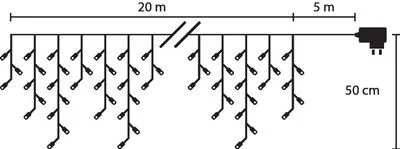 A LED lánc hossza 20 m. A LED-ek közötti távolság 7 cm.