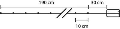 A MagicHome karácsonyi lánc LED világítással ízléses és fényes kültéri kiegészítő a karácsonyi ünnepek alatt. A LED színe hideg fehér, a LED-ek száma 20. A huzal színe réz. Egyszerű világítási funkcióval és BE/KI kapcsolóval rendelkezik. A tápkábel hossza 30 cm. A LED lánc hossza 1,9 m. Kizárólag beltéri használatra szolgál, a védettségi fokozat IP 20. A LED-ek közötti távolság 10 cm. A lánc névleges feszültsége 3 V, a lánc névleges bemeneti teljesítménye 0,6 W. Az áramellátást 2 db AA elem biztosítja, amely nem része a termékdoboznak.