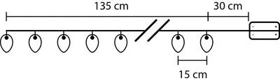A MagicHome karácsonyi lánc LED világítással ízléses és fényes kültéri kiegészítő a karácsonyi ünnepek alatt. A LED színe meleg fehér és a LED-ek száma 10. A kábel színe átlátszó, hossza 30 cm. Egyszerű világítási funkcióval és BE/KI kapcsolóval rendelkezik. A LED lánc hossza 1,35 m. A lánc csak beltéri használatra szolgál, a védettségi fokozat IP 20. A LED-ek közötti távolság 15 cm. A lánc névleges feszültsége 3 V és a lánc névleges teljesítménye 0,6 W. A LED csatlakozás párhuzamos. Az áramellátást 2 db AA elem biztosítja, amely nem része a termékdoboznak.