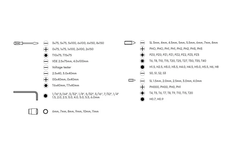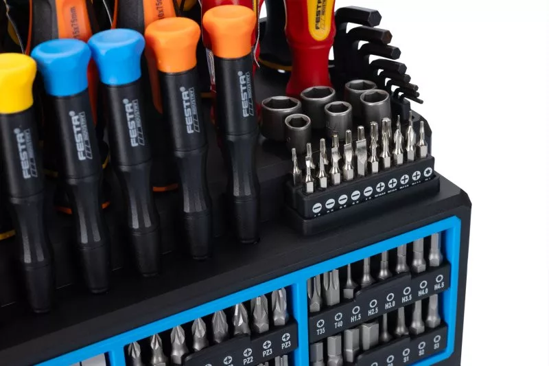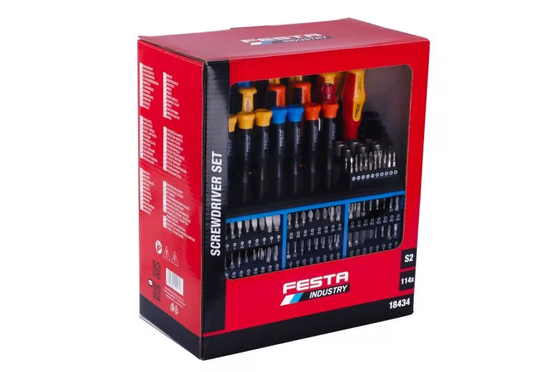 Csavarhúzók és bitek S2 készlet 114 részes FESTA INDUSTRY.