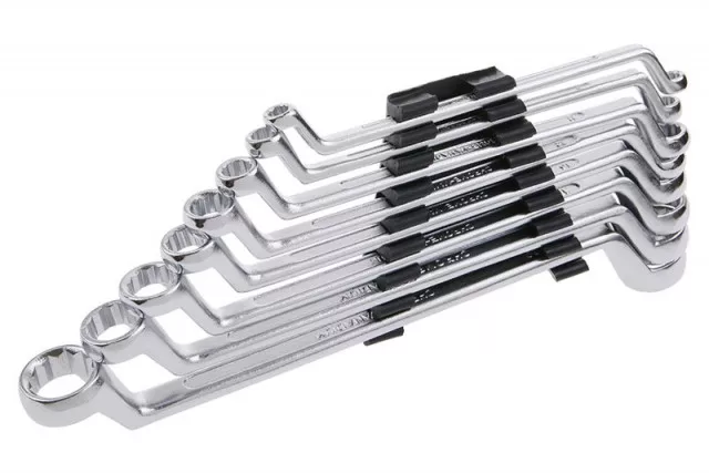 CrV hajlított csillagkulcs készlet, műhelyi használatra.