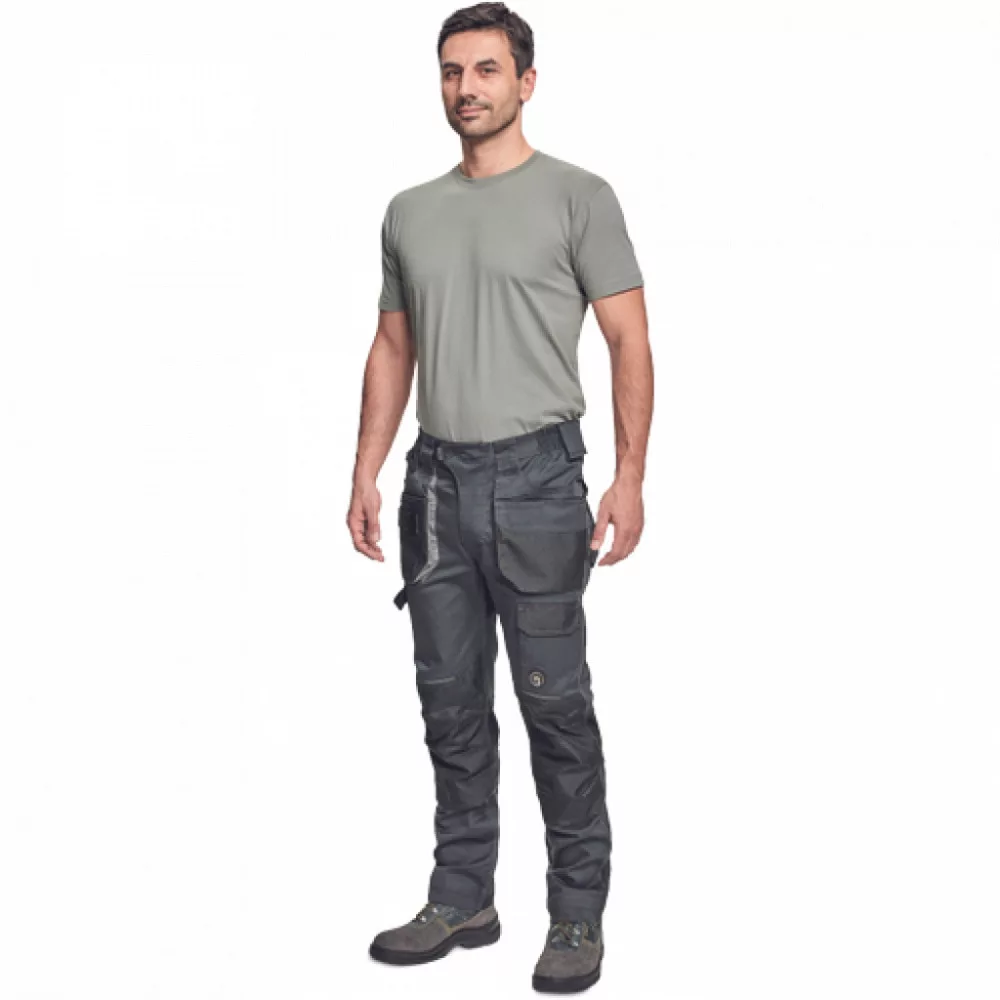 Dinamikus vonalvezetésű, modern szabású férfinadrág, rugalmas, innovatív TRIFIBETEX® anyagból. Alacsony, gumírozott derékkal készül, láb- és üleprészen tartós, tripla varrásokkal. Praktikus kialakítás: megerősített térdrész térdvédőtartó zsebbel, tágas, multifunkcionális első zsebek szerszámtartó pánttal, 2 hátsó zseb Oxford erősítéssel, a combon telefontartó zseb tépőzáras zsebfedővel, külön zsebek vonalzónak, késnek, kalapácsnak, egyedi repülőzseb, D-gyűrű, és szerszámtartó hurok a derékpánton.