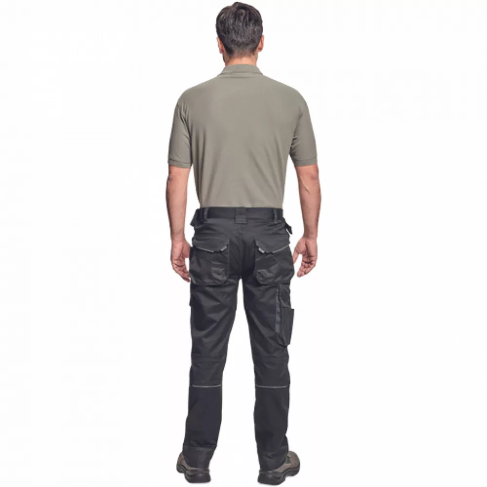 Alacsony, gumírozott derékkal készül, láb- és üleprészen tartós, tripla varrásokkal. Praktikus kialakítás: megerősített térdrész térdvédőtartó zsebbel, tágas, multifunkcionális első zsebek szerszámtartó pánttal, 2 hátsó zseb Oxford erősítéssel, a combon telefontartó zseb tépőzáras zsebfedővel, külön zsebek vonalzónak, késnek, kalapácsnak, egyedi repülőzseb, D-gyűrű, és szerszámtartó hurok a derékpánton.