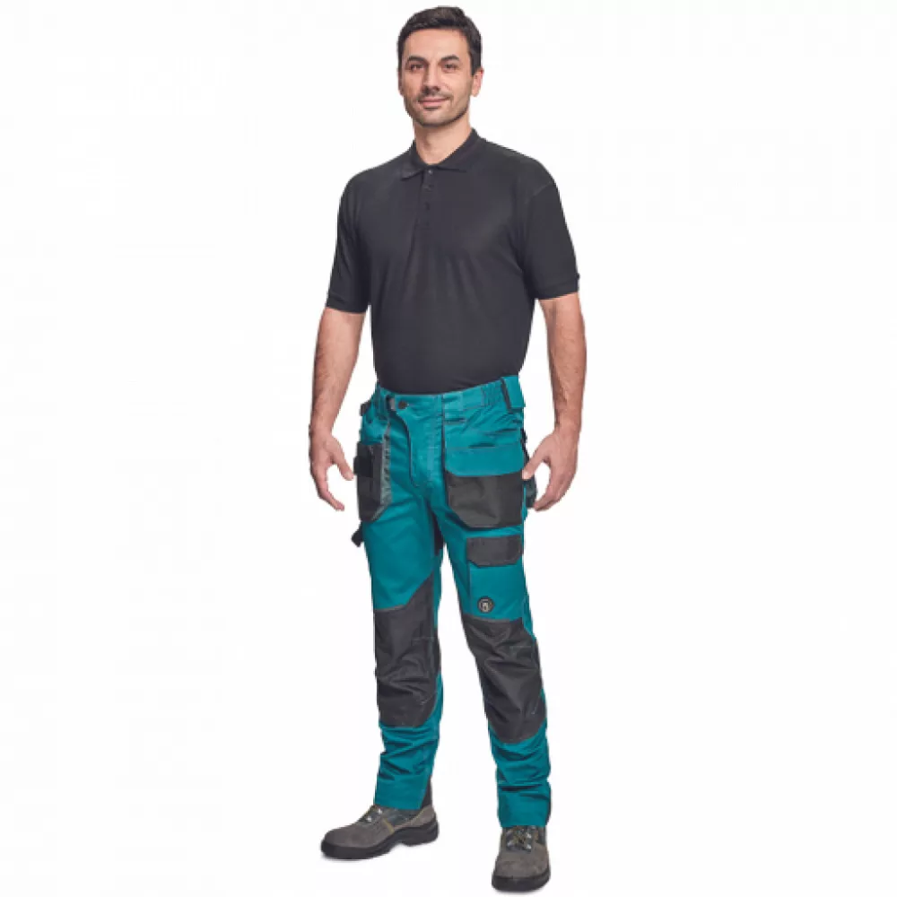 Dinamikus vonalvezetésű, modern szabású férfinadrág, rugalmas, innovatív TRIFIBETEX® anyagból. Alacsony, gumírozott derékkal készül, láb- és üleprészen tartós, tripla varrásokkal. Praktikus kialakítás: megerősített térdrész térdvédőtartó zsebbel, tágas, multifunkcionális első zsebek szerszámtartó pánttal, 2 hátsó zseb Oxford erősítéssel, a combon telefontartó zseb tépőzáras zsebfedővel, külön zsebek vonalzónak, késnek, kalapácsnak, egyedi repülőzseb, D-gyűrű, és szerszámtartó hurok a derékpánton.