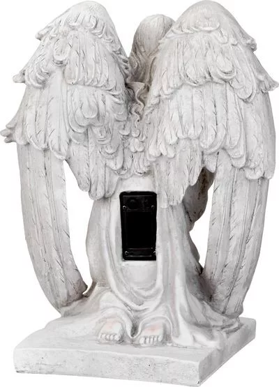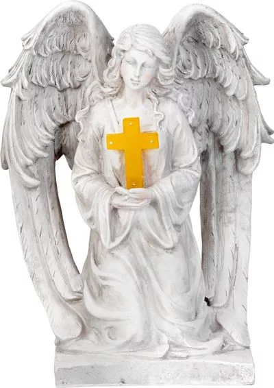 Dekoráció MagicHome, Angyal kereszttel, LED, polirezin, sírra, szolár, 23,5x19,5x30,5 cm