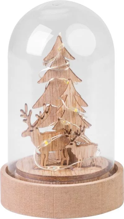 A MagicHome Fa kupolában dekoráció ízléses beltéri kiegészítő a karácsonyi ünnepek alatt. Ez egy LED világítással ellátott karácsonyi dekoráció. A LED színe meleg fehér, a LED-ek száma pedig 1. Egyetlen fény funkcióval és KI/BE kapcsolóval rendelkezik. Az áramellátást 1x CR2032 elem biztosítja, amely a termékcsomagolás része. A dekoráció beltéri használatra alkalmas. A fényforrások nem cserélhetők. Mérete 5,5 x 9 cm.