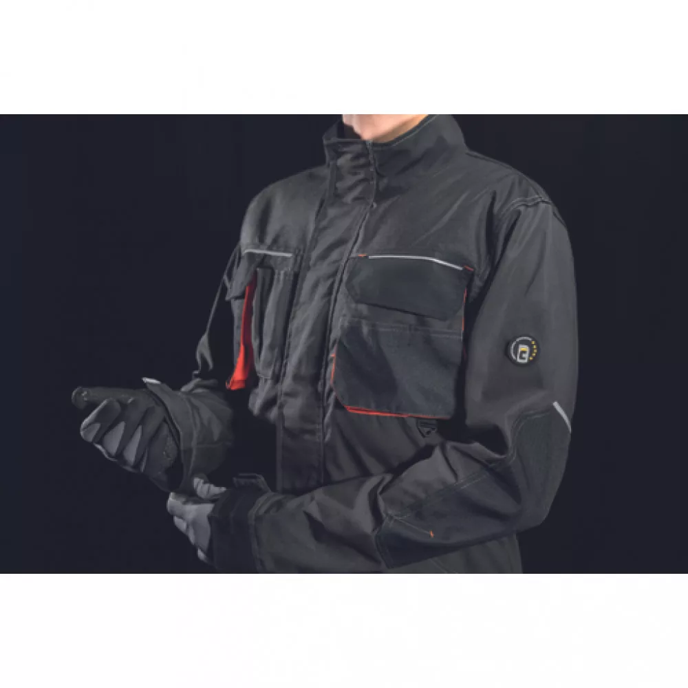 Férfi dzseki multifunkciós zsebekkel; D-gyűrű; Oxford erősítés a könyökön; biztonságos telefonzseb; fényvisszavető elem; kontrasztos színű erősítések; fedett cipzár