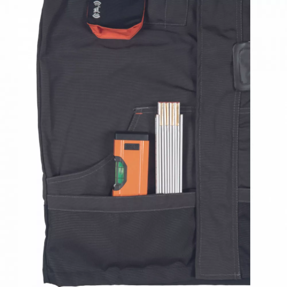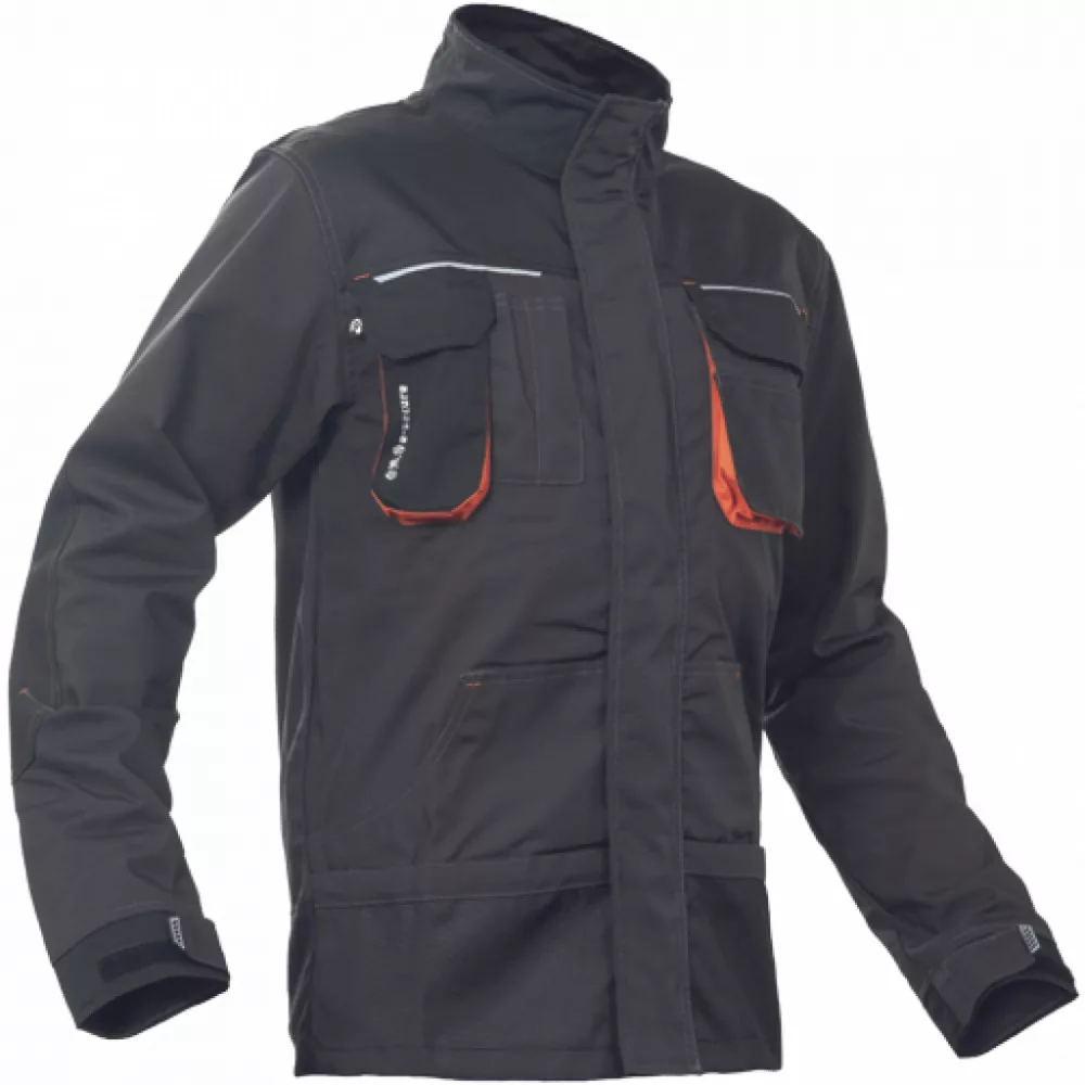 Férfi dzseki multifunkciós zsebekkel; D-gyűrű; Oxford erősítés a könyökön; biztonságos telefonzseb; fényvisszavető elem; kontrasztos színű erősítések; fedett cipzár