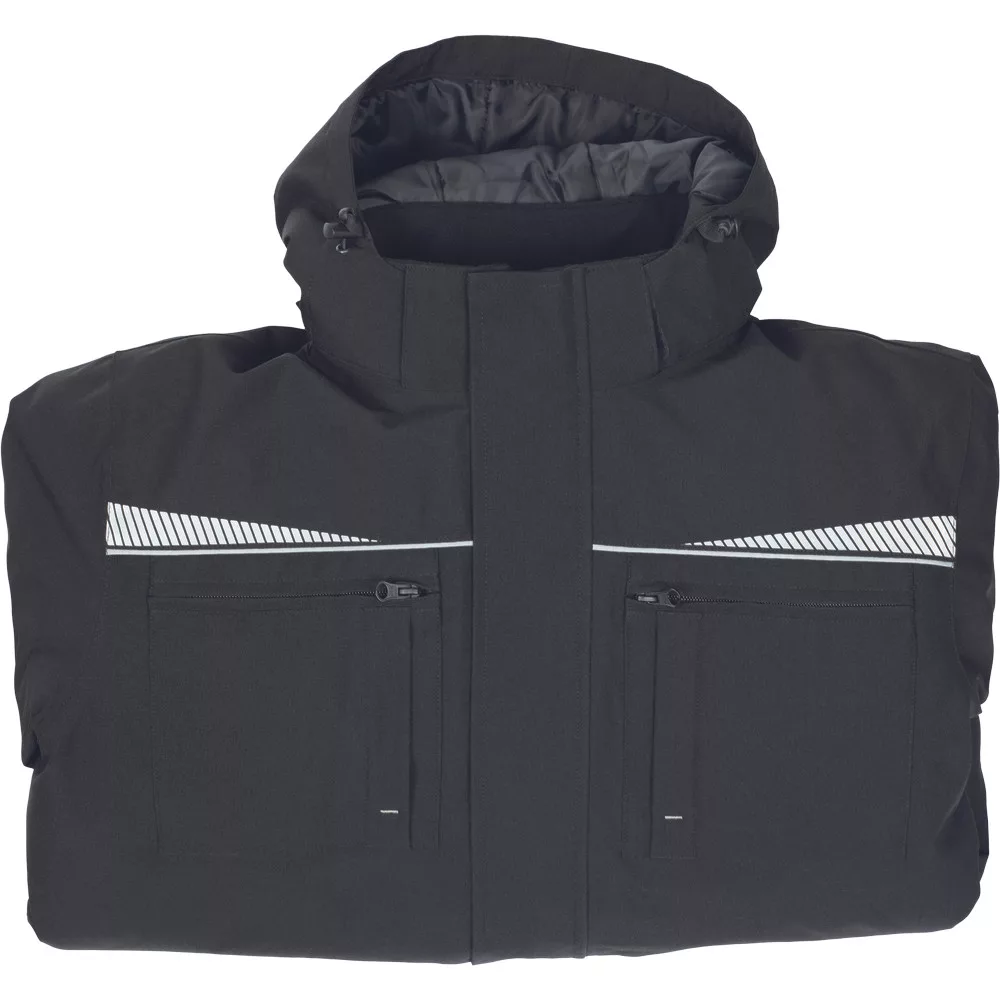 Vízálló téli pilótadzseki levehető, bélelt kapucnival.