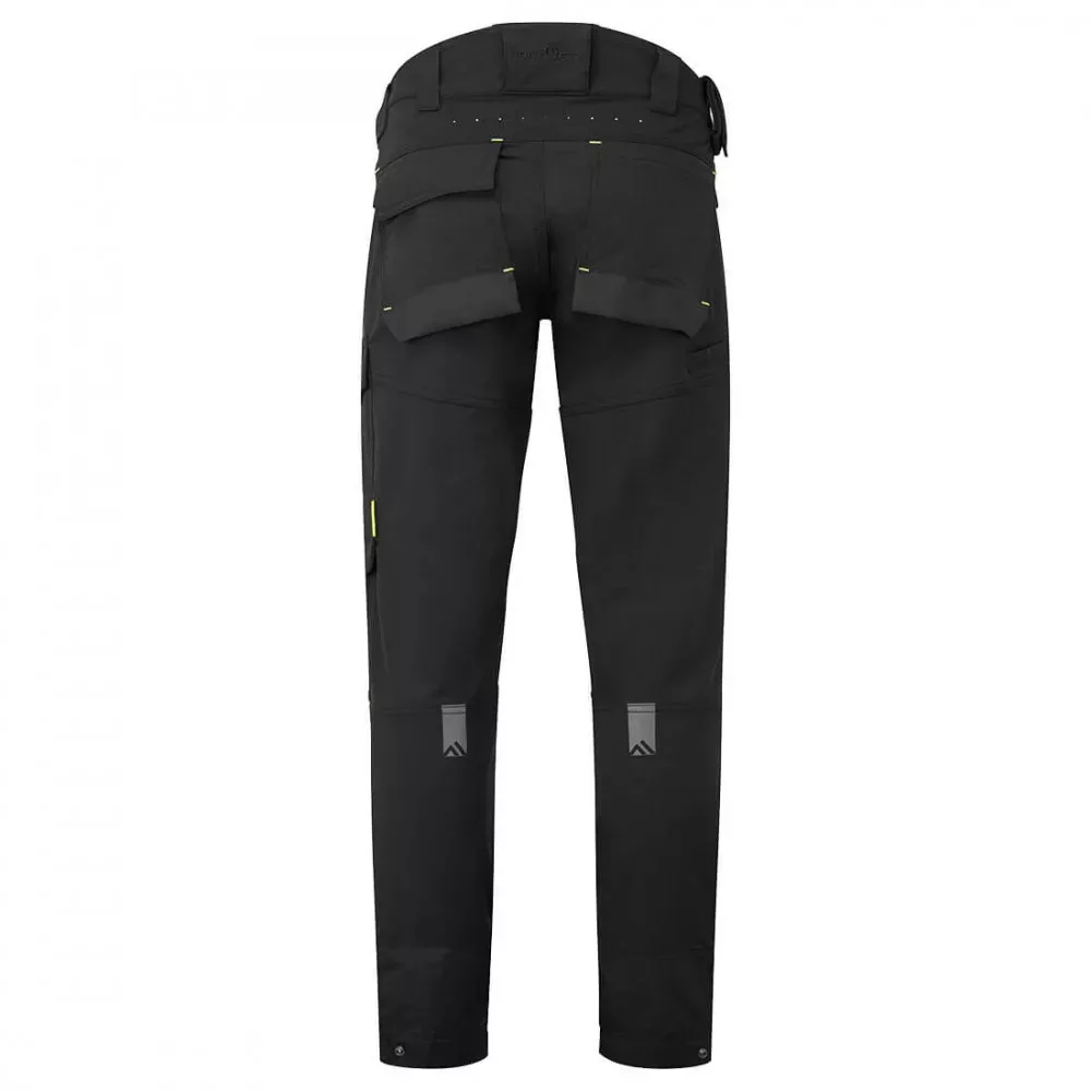 Hasznos, többfunkciós tárolózsebekkel, Colstok tartó zsebbel. Fényvisszaverő nyomtatás a hozzáadott jól láthatóságért. Szerszámhurok a derékpánton a munkaeszközök biztonságos tárolásához. Karcsú szabás sztreccs panelokkal. Rejtett telefontartó zseb, térdvédő zsebek a térdvédők könnyű használatáért, szellőzőcsatornák a jobb szellőzés érdekében.