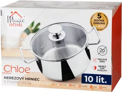 Edény MagicHome Chloe, 26 cm, 10 liter, üvegfedővel, rozsdamentes acél