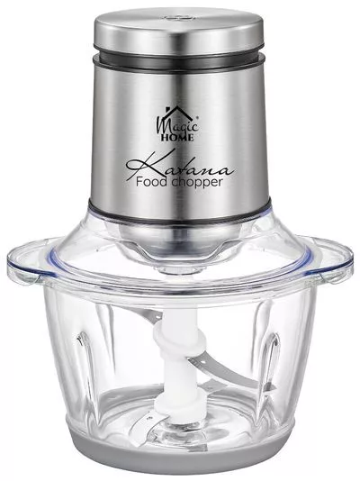 A Katana élelmiszeraprító praktikus eszköz a jég, hús, gyümölcs, zöldség és más élelmiszerek aprítására és darálására. Az aprító erős, 400 W teljes réz motorral van felszerelve, amely meghosszabbítja élettartamát, valamint egy 4 pengés késkészlettel. Az aprító alsó része csúszásmentes alátéttel van ellátva a rezgések és mozgások csökkentése érdekében. Az aprító különböző részei (fedél, késkészlet, üvegtál és alátét), a motoros részt kivéve, mosogatógépben moshatók. A csomag tartalmaz egy 1,2 literes üvegtálat.