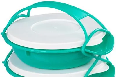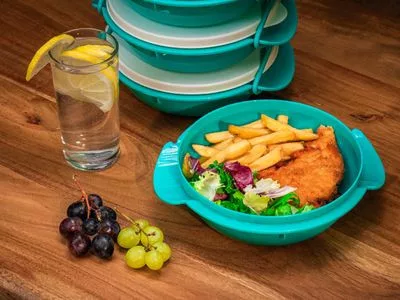 A MagicHome műanyag ételhordó élelmiszerek és ételek szállítására szolgál. 4 db 1 literes tálból áll. A műanyag ételhordó mosogatógépben mosható, hűtőszekrényben és fagyasztóban tárolható. A tálak egyszerűen rögzíthetők egy műanyag kapoccsal. Az ételhordó mérete: 22,4 x 20,5 x 29,5 cm.