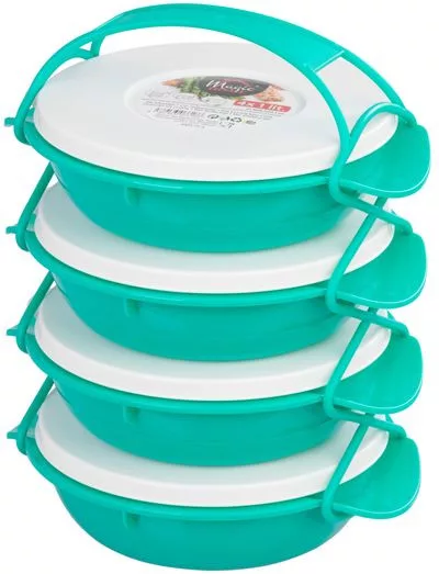 Ételhordó MagicHome, kerek, 4 részes, 4 x 1 l, színes, 22,4 x 20,5 x 29,5 cm
