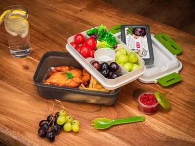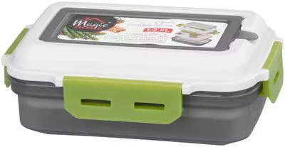 A MagicHome műanyag ételhordó élelmiszerek és ételek szállítására szolgál. Tartalmaz egy villát/kanalat és egy rekeszes tálat, amelyekben az egyes ételeket elosztják. Az ételhordó űrtartalma 1,2 liter. A műanyag ételhordó mosogatógépben mosható, hűtőszekrényben és fagyasztóban tárolható. Méret: 23 x 15 x 8,8 cm.