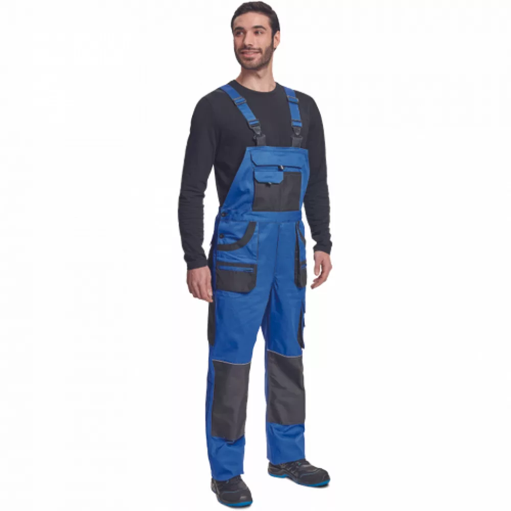 férfi mellesnadrág; 7 funkcionális zseb; két oldalt gombok a derékon; OXFORD poliészter erősítésekkel; a térderősítés alá párna helyezhető; a nadrág szára meghosszabbítható; anyaga 100% pamut, 235g/m2