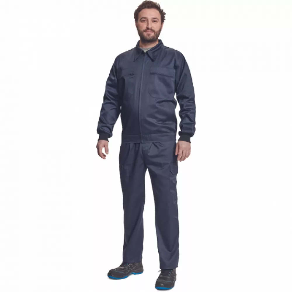 férfi munkakabát; 2 cipzáras mellzseb; 2 elülső zseb; rugalmas mandzsetta és alsó szegély