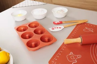 Ezzel a praktikus szilikonformával egyszerre akár 6 fánk elkészítését is lehetővé teszi. Ideális minden típusú sütőben - mikrohullámú, elektromos, forrólevegős és gázüzemű sütőben - történő sütéshez. Ezenkívül fagyasztásra is használhatja a fagyasztóban, ezzel is bővítve a felhasználási lehetőségeit. A forma kiváló minőségű szilikonból készült, és BPA-mentes, ami garantálja, hogy egészségre ártalmatlan. nem tapadó tulajdonságainak köszönhetően szinte egyáltalán nem kell zsírozni vagy üríteni. A forma 260°C-ig hőálló, és használat után könnyen elmosható a mosogatógépben.