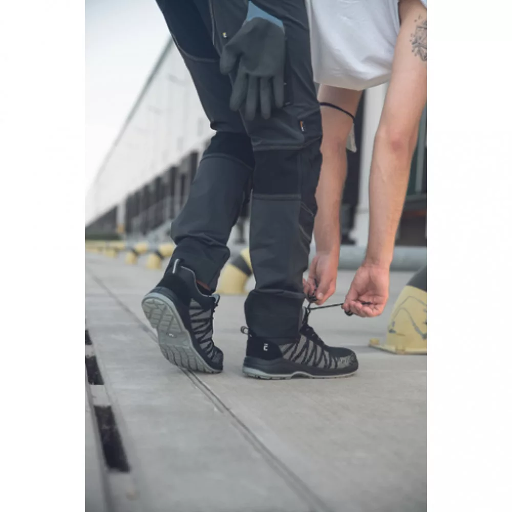 Könnyű biztonsági cipő, modern, sportos kivitelben. A felsőrész lélegző textilből készül. Az olajálló csúszásgátló talp kettős sűrűségű poliuretánból készül, és minden lépésben maximális biztonságot nyújt. Ezenkívül a cipők belső talpbetéttel vannak felszerelve, amely garantálja a kényelmet járás közben. A párnázott sarok elnyeli az ütéseket és csökkenti a lábak fáradtságérzetét. A kompozit anyagból készült könnyű és modern lábujjvédőnek köszönhetően a lábbeli megfelel az EN ISO 20345: 2011 szabvány S1 követelményeinek. Ez azt jelenti, hogy a lábujjakat legfeljebb 15 kN erő hatása ellen védik, vagy 1 m magasságból 20 kg-ig terjedő teher esését. A lábbeli nem tartalmaz fémet. A modell gyártása során felhasznált modern anyagoknak köszönhetően a cipő össztömege nem haladja meg a 495 g-ot (félpár 42-es méret). A minimalista design és a modern színek remekül passzolnak a Cerva munkaruhákhoz.