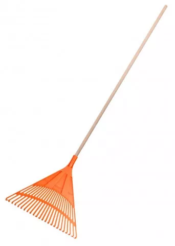 Műanyag gereblye 60 cm 24 léc, fa nyél 160 cm.