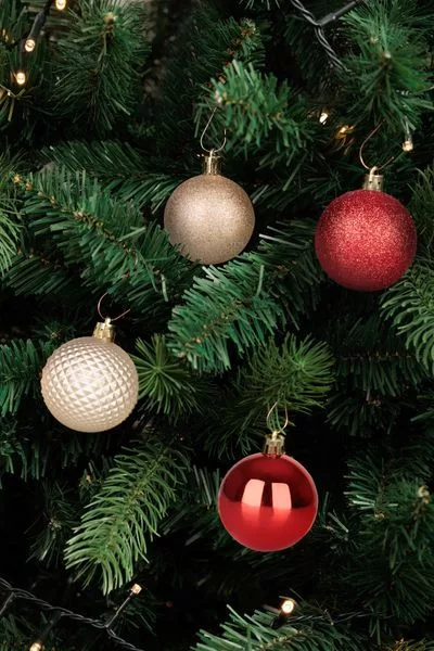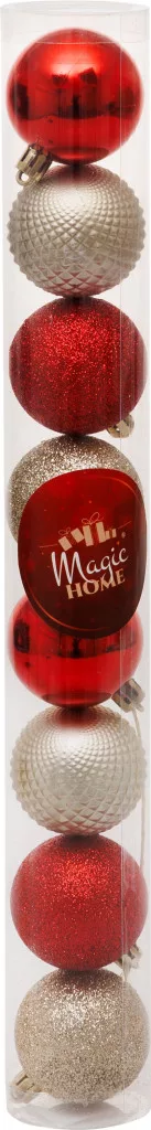 Gömb MagicHome Karácsony, 8 db, piros-pezsgő, karácsonyfára, 5 cm, Sellbox 36 tubus