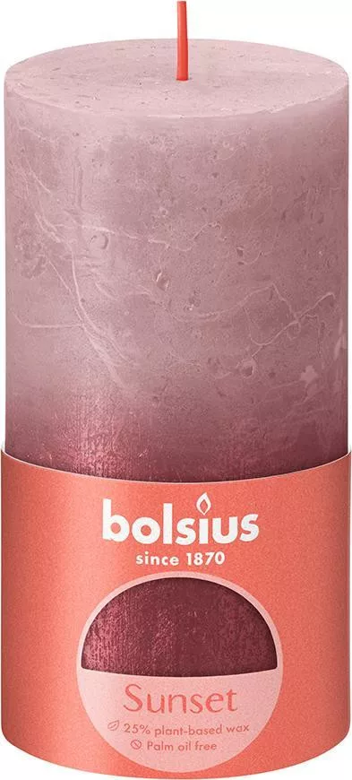 Gyertya Bolsius Rusztikus, hengeres, Christmas Sunset Ash Rose+ Red, 130/68 mm