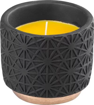 A Citronella gyertya friss citrusillattal illatosítja otthonát. 3% illatkomponenst tartalmaz. Hozzávetőleges égési idő: 26 óra. Viasz súlya: 200 g. Méretek: 110x100 mm.