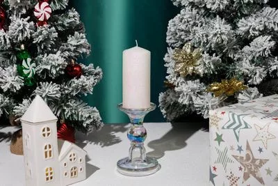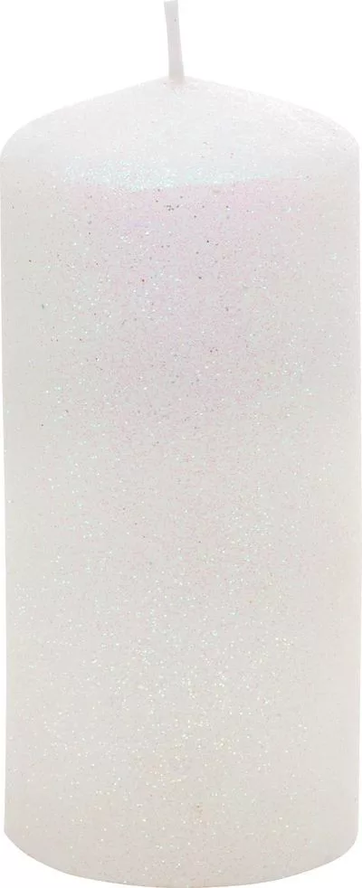 Gyertya MagicHome Karácsony, 5,5x12 cm, hengeres, fehér, csillámokkal