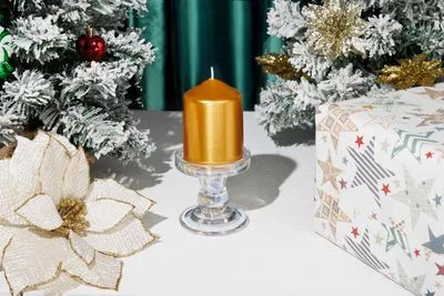 Gyertya MagicHome Karácsony, 7x10 cm, hengeres, arany, metál hatású