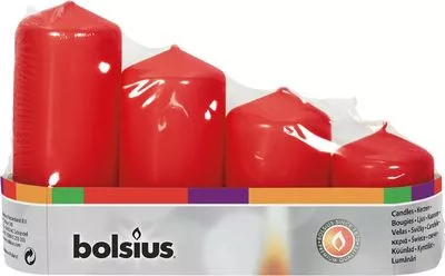 Gyertya bolsius Pillar Advent, piros, 48 mm 60/80/100/120 mm, 4 db