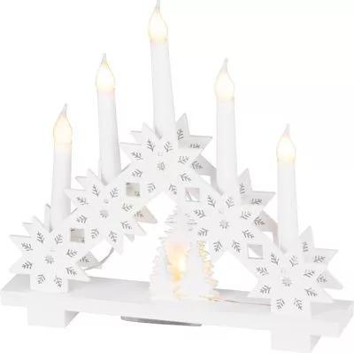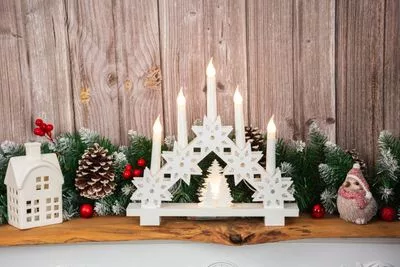 A MagicHome gyertyatartó ízléses kiegészítője a karácsonyi ünnepek alatt. Ez egy LED világítással ellátott karácsonyi dekoráció. A LED színe meleg fehér, a LED-ek száma pedig 6 darab. Egyetlen fény funkcióval rendelkezik. A védettségi fok IP20, a dekoráció beltéri használatra alkalmas. A névleges feszültség 3 V, a névleges teljesítmény pedig 0,3 W. Az áramellátást 2 x AA elem biztosítja, amely nem tartozék. A fényforrások nem cserélhetők. Mérete 32x5x30,5 cm.