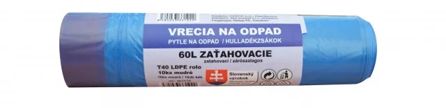 Hulladékzsákok T40 LDPE 60 L 10 db kék zárószalagos