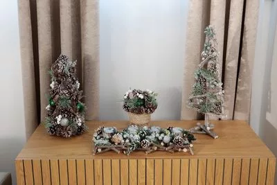 A MagicHome függöny nem hiányozhat a karácsonyi ünnepek alatt sem a belső térből. Ez egy ízléses, adventi ikebana fenyőtobozokkal, fadarabokkal megtámasztva. Színe ezüstszínű. Méretei 40x14x8 cm.