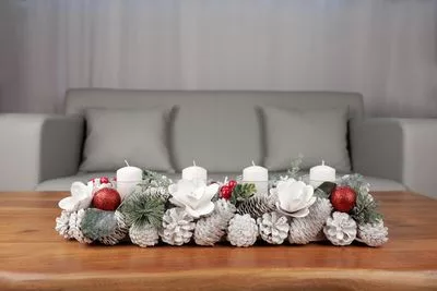 A MagicHome függöny nem hiányozhat a karácsonyi ünnepek alatt sem a belső térből. Ez egy ízléses, természetes, adventi ikebana fenyőtobozokkal és fehér virágokkal. Méretei 50x16x9 cm.